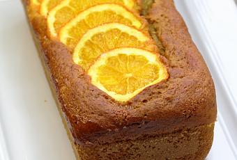 - Line a mold with baking paper. Pour the dough and place some orange slices. Sprinkle some sugar cane over orange slices.