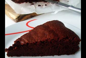 En este libro, la receta aparece como "crujiente de chocolate amargo" ya que la superficie del bizcocho se tenía que agrietar. El mío no se agrietó tanto y tiene una textura muy suave y esponjosa por dentro. Es una textura muy agradable para el paladar. Se nota el sabor del chocolate. El bizcocho no tiene un sabor muy dulce, lo que resulta interesante. Resalta el sabor del chocolate.