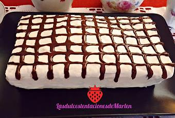 He derretido el chocolate negro al baño María y lo he puesto en una bolsita pequeña, le he echo un agujerito en la punta y me he puesto ha hacer la rayas cruzadas sobre la cobertura de chocolate blanco. ( ir despacio sin prisas), después el he pasado la punta de un cuchillo a las rayas en sentido contrario para que de forma de relieve.Si os parece un poquito complicada la decoración podéis ponerle el chocolate por encima y algún adorno a vuestra elección. ( la decoración es al gusto)