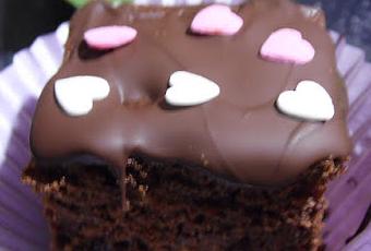 Napar por encima de los bizcochos con éste.Decorar con los corazones de azúcar.Y dejar enfriar 10-12 minutos en el frigorífico para endurecer el chocolate.