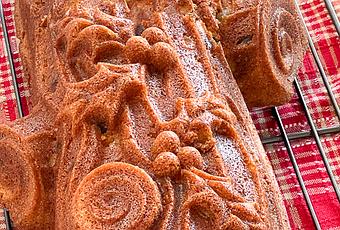 Ella hace la receta en un molde de bundt cake muy navideño, el Let it snow que podéis ver aquí y aquí. Yo no tengo eses molde y mira que tengo mas de 40. así que he usado el molde tronco de Navidad tambien de Nordic Ware y que me encanta.