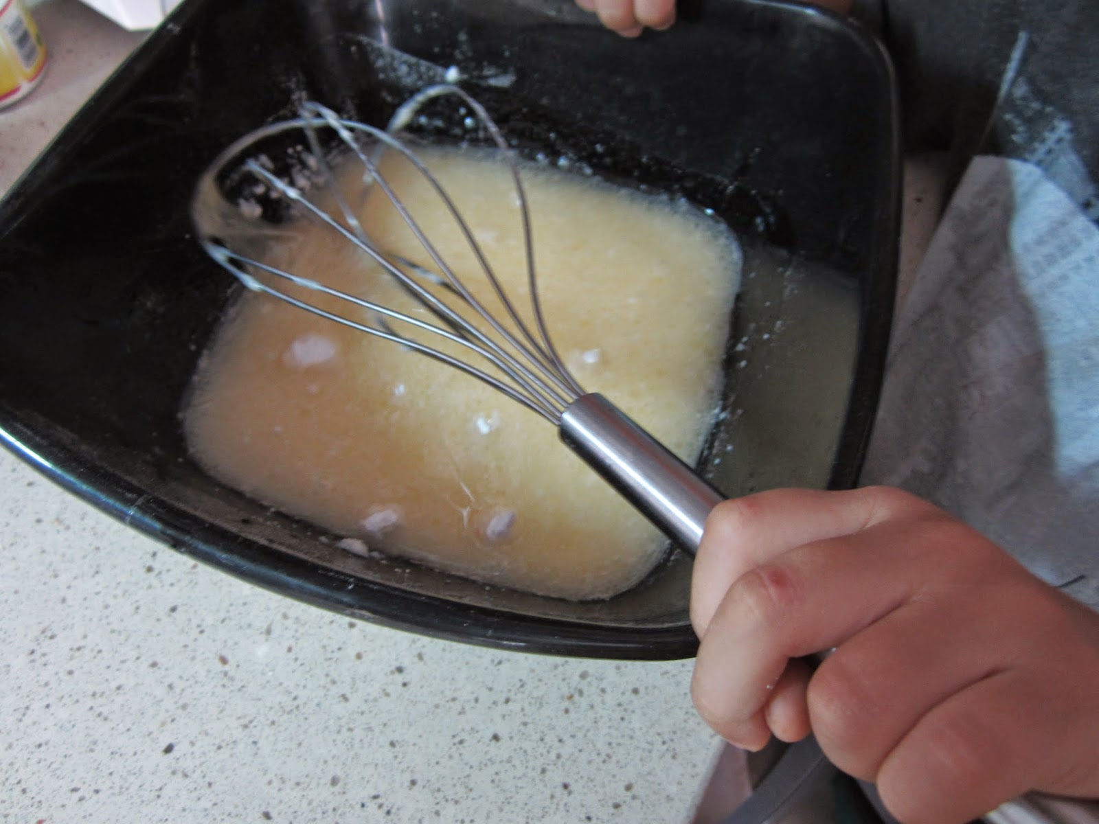 Añadimos el azúcar, la leche, la levadura y el aceite, que sigan batiendo (si eso les echamos una mano para que no quede ningún grumo)