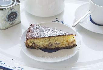 Ingredientes- 1 yogur natural.- 2 huevos.- 3 medidas de yogur de harina.- 2 medidas de yogur de azúcar.- 1 medida de yogur de aceite.- El zumo de una naranja.- Granos de granada al gusto.- 1/2 sobre de levadura.- Una pizca de sal.- Azúcar glas para decorar.