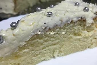 En mi caso, este bizcocho lo he preparado como una tarta de cumpleaños por lo que al día siguiente de haberlo horneado lo he recubierto de una buttercream de vainilla.