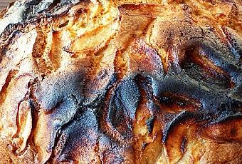 Una vez tengamos la masa de la harina bien mezclada, en el molde engrasado poner la mitad de la masa. Añadir encima una parte de la manzana, cubrir con el resto de la masa y colocar por encima la manzana.