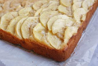 Pelamos el resto de las manzanas y las partimos en trocitos para cubrir toda la superfície.