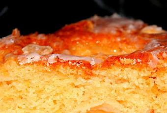 Removemos bien con las barillas para que no se formen grumos y echamos el preparado sobre el molde previamente engrasado con mantequilla y enharinado. Pelamos las manzanas, les cortamos el corazón y guardando la forma las fileteamos y las vamos colocando sobre las masa. Por, ultimo, pasamos las almendras por un poco de harina y las repartimos por encima.