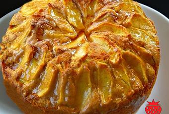 Forramos con papel vegetal el fondo de un molde de 22 cm y untamos las paredes con mantequilla.Echamos la mezcla del bizcocho en el molde. Cortamos una manzana en láminas y las vamos poniendo por encima de la masa de bizcocho en redondo. Espolvoreamos con azúcar por encima.Horneamos durante unos 40-45 minutos, con el horno previamente precalentado a 180º C. Pinchamos el centro para asegurarnos de que está hecho, si no fuese así, dejamos unos minutos más. Para la Glasa: Fundimos la mantequilla en el microondas, añadimos la canela y el azúcar y mezclamos bien. Pincelamos la tarta con esta mezcla antes de que se enfríe. Yo he puesto nata con topping de caramelo para decorar los platitos.Y ahora a disfrutar este delicioso bizcocho, No dudéis en probarlo!!
