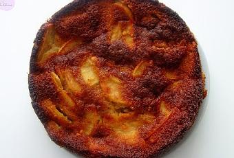 7° Engrasamos un molde y vertemos la masa. Horneamos durante 45 minutos. Si pasados 25 o 30 minutos veis que el bizcocho está muy doradito, lo podéis cubrir con papel vegetal hasta el final del horneado.
