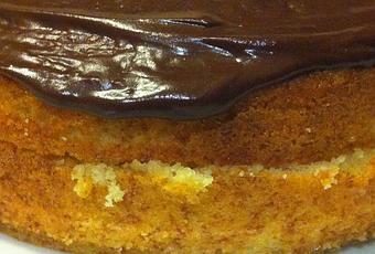 Cuando el bizcocho este listo dejamos enfriar , cortamos por la mitad y rellenamos con mermelada de naranja y sobre la tapa echamos el chocolate . Dejamos enfriar .