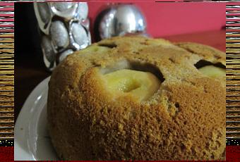 - Echar la masa a un molde engrasado y enharinado y colocar, de pie, las peras peladas.