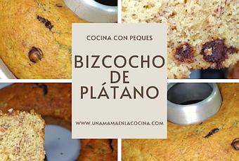 Y como estos días un par de plátanos se nos pusieron pochos, es decir, negros y blandos, pues decidimos hacer un bizcocho de aprovechamiento, así también pasábamos la tarde juntos haciendo cosas de cocinillas.