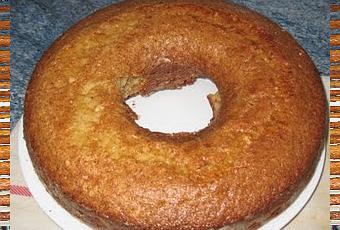 14.- E introducimos en el horno precalentado a 180º durante unos 30-40 minutos. Depende del horno, como siempre (yo necesité 40 minutos). Probaremos con un palillo, si sale seco, está listo!!Y este es el resultado de mi bizcocho...
