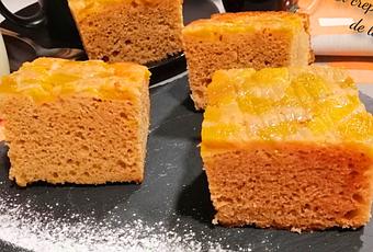 BIZCOCHO DE YOGUR DE CHOCOLATE CON MELOCOTONES EN ALMÍBAR