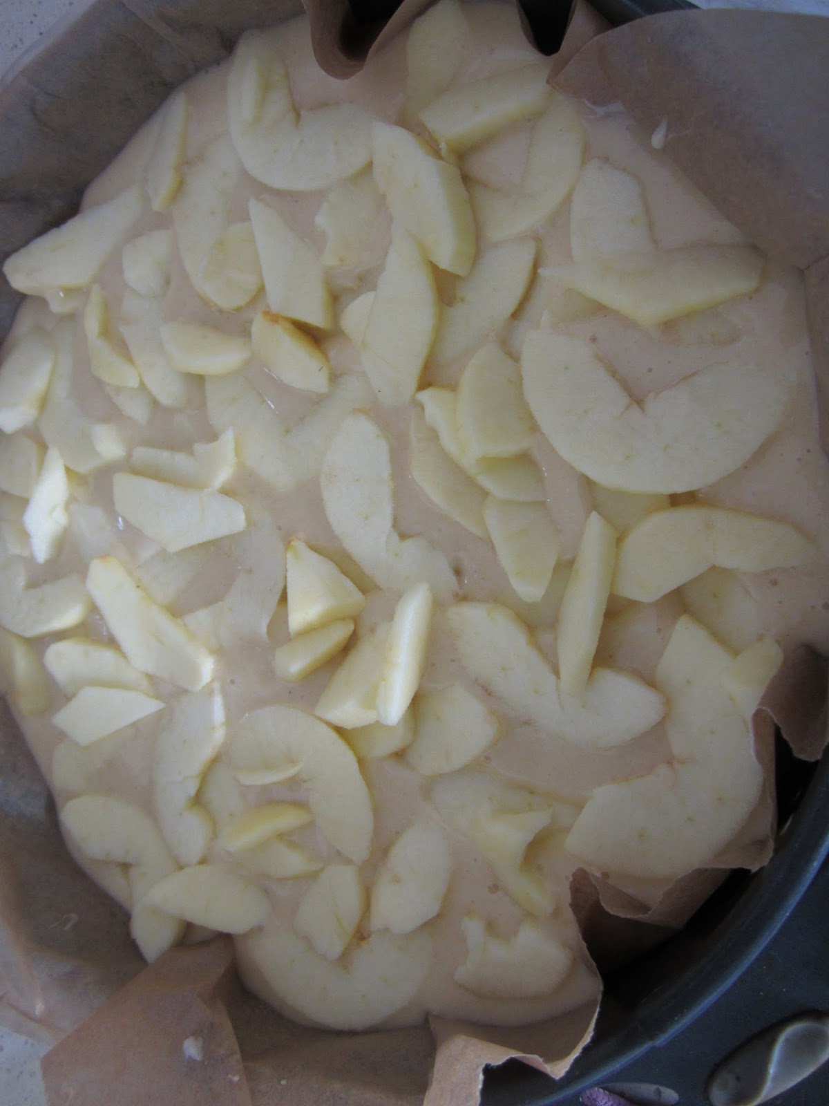 Cuando quedan unos 10 minutos pincharemos con un palillo para comprobar cómo va la cocción, si el palillo sale limpio ya tenemos el bizcocho listo para comer.En este bizcocho he aprovechado unas manzanas que tenía en el frutero que ya no se iban a comer porque estaban un poco blanditas, para pelarlas y cortarlas a láminas y ponerlas por encima de la masa cruda. Cuando sale del horno se habrá convertido en una capa de manzanas muy jugosas, si aparte añadimos un poco de azúcar nos quedará una capa crujiente y muy agradable al paladar.