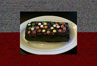 Finalmente se mete en el horno pre- calentado a 180ºC durante 20 minutos. Se recubre de chocolate con un poco azúcar, leche y lacasitos