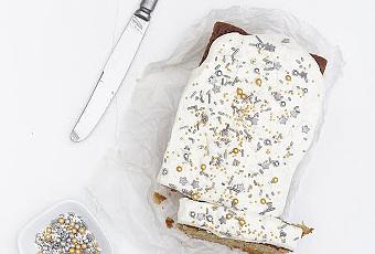 La receta del cake es de Isabel (Aliter Dulcia). Otra gran receta, otro gran acierto de Isabel. En casa ya lo he hecho varias veces, con y sin glaseado. Me gusta de las dos maneras. Tú elige como quieres tomártelo.Isabel la publicó sin glaseado pero a mi se me ocurrió preparar uno y decorar con sprinkles y darle así un toque festivo a este cake.