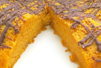 Aunque tengo más de un bizcocho de calabaza publicado, el que os traigo hoy es diferente por su textura, se asemeja casi mas a un pudding, ya que lleva una cantidad importante de calabaza, esto hace que sea muy cremoso, húmedo, con un sabor importante a esta y un bonito color naranja. Si lo rematamos con una decoración de chocolate será un postre irresistible.