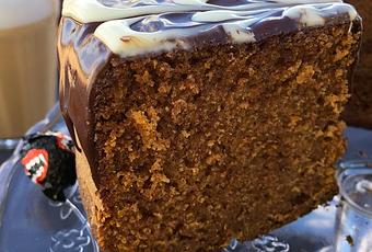 – Lo podéis degustar así, pero si os apetece adornarlo, derretir chocolate negro con una cucharada de aceite de coco y cubrir la superficie del cake, luego con chocolate blanco derretido, hacer unos cuantos círculos y hacer líneas con un palillo hacia el interior. Precioso! pero más importante, delicioso!