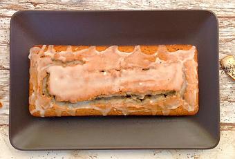 Una vez cocido retiramos del horno y dejamos enfriar el bizcocho dentro del molde durante 5 minutos. Luego desmoldamos sobre rejilla y dejamos que se enfríe totalmente.Preparamos un glaseado mezclando el zumo de naranja y el azúcar glas y cubrimos el bizcocho por encima.