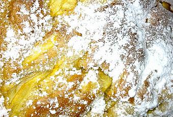 - Tamizamos la harina con ayuda de un colador y seguidamente la maizena. A continuación los mezclamos con el resto de los ingredientes secos (azúcar blanco y levadura).