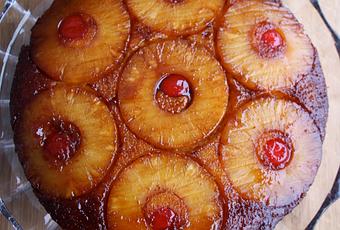 Acto seguido ponemos las rodajas de piña y las guindas en el centro. Reservamos.