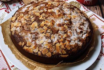 Vertemos en el molde engrasado y con papel y cubrimos con almendras fileteadas y un poco de azúcar.