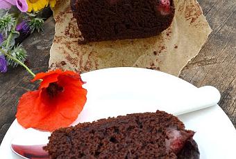 INGREDIENTES:- 200 grs. de azúcar- 200 grs. de harina- 75 grs. de cacao puro- 450 ml. de leche de avena o de soja- 40 ml. de aceite de girasol- 1 sobre de levadura ( que no contenga huevos ni lactosa)- Fresas para decorar