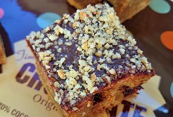 Para la cobertura;♥ 1/2 tableta de chocolate negro♥ 3 cdas de leche vegetal♥ un puñado de avellanas trituradas