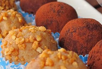Formamos bolitas de unos 25 gramos cada una y las vamos rebozando en cacao en polvo o en crocanti de almendra, pasamos las bolitas a capsulas de papel. Dejamos enfriar unas horas en la nevera antes de consumir.