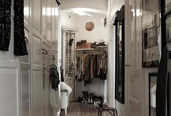 Hoy entramos en una casa donde el black and white tan deseado se impone. Aunque tenga la esencia nórdica depurada es la que unifica todos los espacios con los suelos de madera tan característicos de este estilo. Incluyen objetos vintage como las botellas de cristal para conseguir un rincón glamuroso. El protagonismo se lo lleva sin duda el pasillo con su pared vestida de cuadros de marco negro sobre el fondo blanco de la pared.