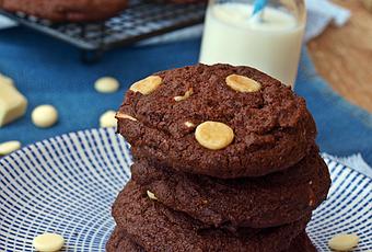 Si hay que empezar la semana pues lo hacemos pero creo que no hay nada mejor que con algo dulce, porque con tanta lluvia necesito alegrarme un poco. Los días de tanta agua me dan dolor de cabeza y prefiero algo de chocolate que un paracetamol para que se quite. Me gusta preparar galletas y de hecho en el blog puedes encontrar bastantes recetas de cookies, bizcogalletas... esos bocados individuales que en una caja de lata aguantan bien un tiempo si es que nos hemos podido resistir a no comerlas.Si llevan chocolate son de éxito seguro aunque con cítricos también son de mucho éxito, me gustan las fáciles que no requieran cortadores, que con una batidora y las manos puedas tener unas ricas galletas que llevarte a la boca acompañado aunque sea a un vaso de leche.Hoy son galletas de chocolate blanco y negro, en la masa tendremos el chocolate negro y luego unas chispas de chocolate blanco para ese contraste de color.A mi me encantan y a tí creo que también te gustarán, crujientes por fuera y blanditas por dentro.