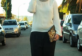Hi everybody! Today I show a party look, you can inspire for your evenings and specials dinners. Black and white combination is my favourite and never fails. I combine white shirt with black details with my new baggy pants of C&A. To contrast, red lips. This lipstick is Maybelline, keep all night, even after eating, 100% recommended!!