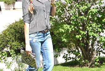 Good morning! Todays ourfit, Desigual jeans and Sheinside shirt, with black and white stripes, one of this season trend.