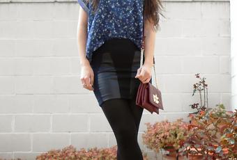 ¿Qué tal estáis? Espero que genial y disfrutando de estos días soleados. Hoy, os propongo un look en el que predominan azules y negros, como podéis ver en la camiseta y la falda, las cuales he acompañado con bolso burdeos y botines negros.