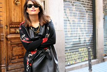 Vestido/Dress: Monki AW'11-12 Pañuelo/Scarf: H&M (Old) Botines/Booties: Asos (Old) Collar/Necklace: Vintage Prometo que cuando hice estas fotos hacía buen tiempo como para no llevar medias y ahora me da frio solo con verme... así que imaginaros que llevo unas tupidas negras ¿vale? :P En cuanto a look estaba deseando tener un vestido saco, y encontré el perfecto en Monki que mezcla cuero con neopreno, para darle un poco de alegría me puse un pañuelo de flores en tonos rojos ¿Te gusta?