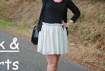 Llevo falda de vuelo con estampado de corazones en crudo y negro camiseta básica en negro y chaqueta pues hacia última hora refresca el tiempo. Como complementos en coral, con slippers moustache, collar con toques dorados y bolso en negro.