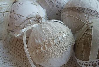 Me han parecido preciosas estas bolas para decorar la Navidad que hemos visto en LaMiaCasa. Están realizadas con tejidos naturales en tonos blancos y naturales. Como veís en las fotos sobre la base de la bola (puede ser una de corcho por ejemplo) se van enrollando cintas de materiales como lino, tela de saco, etc... y se van adornando con cintas, puntillas de ganchilo, organza... El resultado es fantástico. Si este año queréis tener una navidad ambientado en blanco y con un precioso aire romántico... esta es vuestra elección.