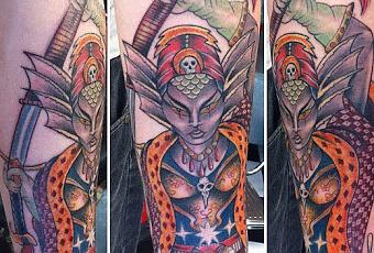 El arte de John Blanche no se limita a los lienzos o las ilustraciones de libros,portadas de discos y de juegos de todo tipo,sea en forma física o digital.No puede ser contenido en solo esos formatos Hay gente que decide ir un paso mas allá y se tatúan obras de Blanche en el cuerpo.Lo que han echo ha sido tomar esta imagen original y adaptarla a la forma del brazo,a la cara interior del mismo por lo que se puede intuir en esa foto.La verdad es que el resultado,como se puede ver es sencillamente espectacular.