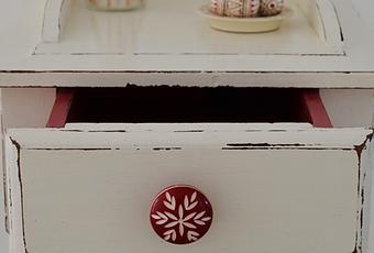 Tiene lindos detalles que destacamos al desgastar y el toque se lo dio el color interior del cajoncito, anticipado por el tirador DIVINO justo de un tono similar.
