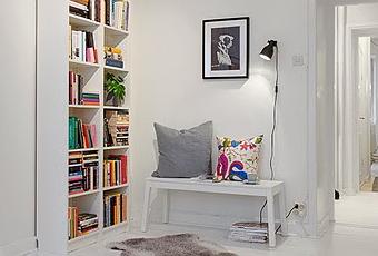 Este apartamento tiene solo 50 metros cuadrados, ubicado en Gotemburgo, en la planta baja de un antiguo edificio reciclado interiormente, y completamente blanco con toques de gris y color, que logra a primera vista ampliarlo sin lujos ni pretenciones