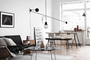Cada vez me gusta más cómo quedan las paredes negras, eso sí, siempre en pequeñas dosis (aquí han pintado de negro la esquina de la chimenea) y no apto para espacios pequeños. Fijaos en las paredes del dormitorio, la forma de pintar el zócalo en color gris me ha parecido espectacular!