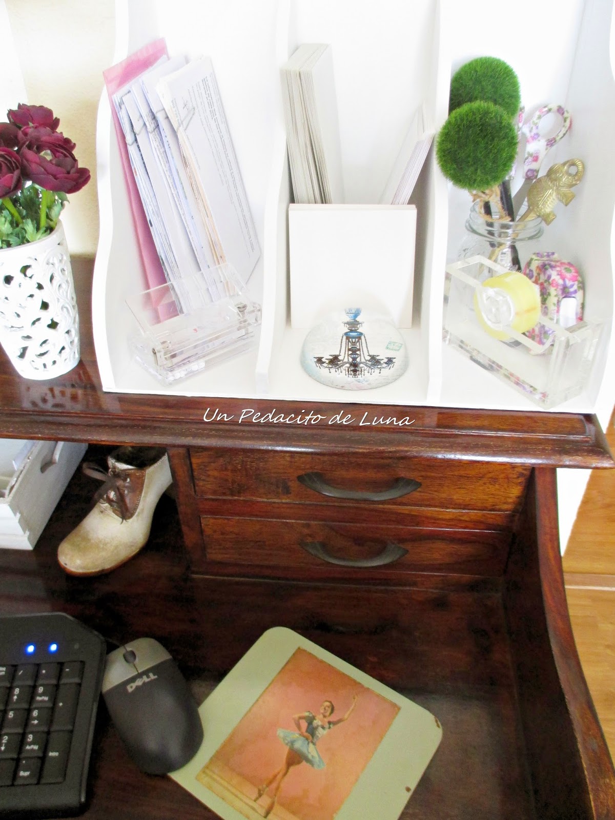 Creo que lo voy a poner en la entrada para dejar la correspondencia, pero mientras le aporto un toque de iluminación y decoración a la misma,estará en mi escritorio...Sólo pinté y añadí unas piezas de escayola para decorar.Tal vez cuando esté en su lugar le aplique algún sténcil lindo!!