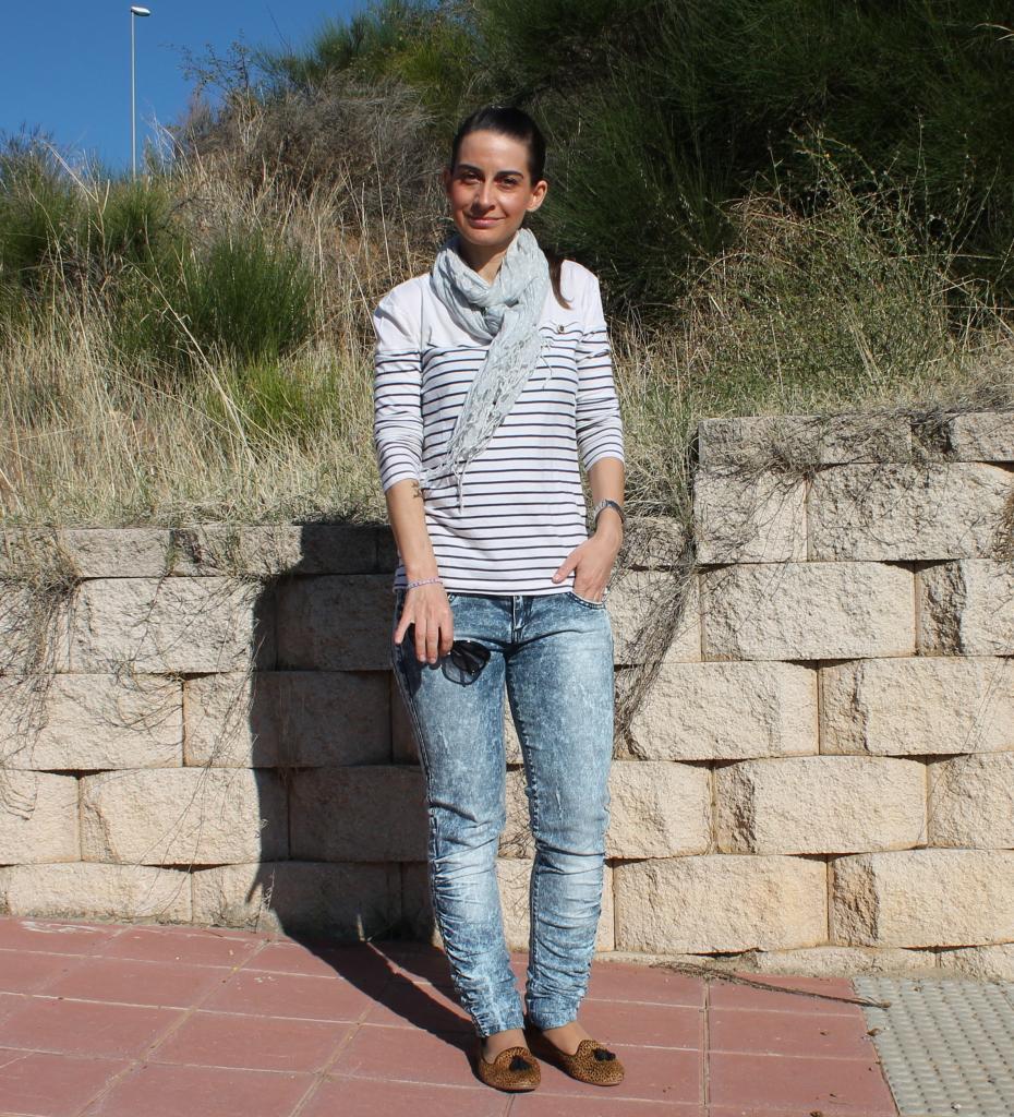 Sweater- Mango (old).Jeans- Bershka (old).Scarf- Kiddy´s class (old).Slippers- Kiddy´s class (new season).Sunglasses- Tous (old).Mezcla rara ? no sé, a mí me gusta el resultado.Veo tantas fotos, tantos looks de street style que de vez en cuando ( a pesar de mi clasicismo en el vestir) me da por hacer combinaciones menos corrientes. En el look de hoy he combinado algo tan clásico como una camiseta de manga larga de rayas con un pantalón desteñido a la lejía y unas slippers de leopardo. A lo mejor os parece una combinación un poco estrambótica. No sé, vosotros me diréis...Qué os parece? Acierto o... patinazo? Bss y hasta el domingo con una nueva peli.Feliz finde a todos:)Gracias por vuestros comentarios.Thanks for your comments.