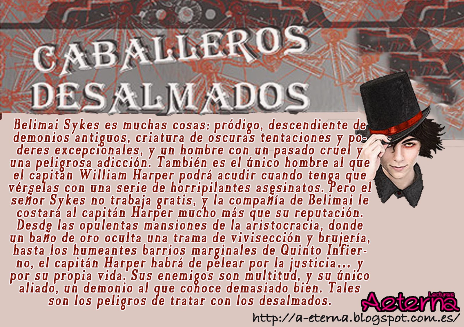 Bueno, hablando un poquito de la editorial, ello se presentan algo así:"Blind Eye Books is an independent press dedicated to publishing science-fiction and fantasy stories with gay and lesbian protagonists. Our books span a wide variety of styles, settings and themes, but they are always exciting and positive. They are heart-pounding and heart-warming, sensual and sensational. In short, they are stories that we love and are proud to present to the world"Un poquito traducido: Se trata de una editorial dedicada a la publicación de la ciencia-ficción y fantasía historias con protagonistas gays y lesbianas. Nuestros libros abarcan una amplia variedad de estilos, configuración y temas, pero siempre son muy interesantes y positivas. Son palpitante y entrañable, sensual y sensacional. En resumen, son historias que nos encanta y estamos orgullosos de presentar al mundo.Es algo que me parece fantástico... ¿qué mejor manera de crear concienciación y apoyar al amor, sea cual sea? Luchar con cultura :PSe están abriendo actualmente al mercado español y su primer título traducido, como ya os he adelantado por redes sociales es: Caballeros desalmados de Ginn Hale. Título original: Wicked Gentlemen.