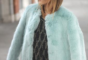 I love the top that I show you today because it has a beautiful back. I combined it with a light blue faux fur coat and black jeans.