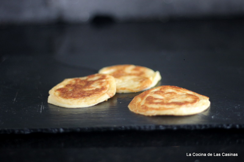 Dispón la crema en una jarrita, incorpora la mantequilla a la sarten, cuando este deshecha, si tienes molde rellena cada uno de los departamentos, debe de cuajar un minuto más o menos por cada lado. Si no tienes molde coloca montoncitos de crema intentando queden iguales.