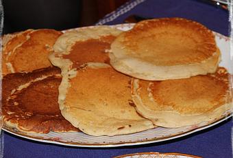 Los blinis son unas tortitas... ni más ni menos... así que ya os imaginaréis que no tienen ningún misterio ni ninguna complicación... sólo dos pequeños puntos que hacen de estos algo diferente de las tortitas.... algo, en fin... mejor, ¿porqué? Porque estos blinis quedan mucho más esponjosos y aéreos que las tortitas convencionales en las que lo que quieres es que sean porosas y absorban sirope... en estos lo que quieres es que sean ligeros pero muy esponjosos, y sirven, esencialmente, de "plato" para untar en ellos crema agria y caviar, jejeje....Yo siempre había leído que hacer blinis era complicadísimo... que se requerían ingredientes especiales y que no merecía la pena cuando podías encontrarlos ya hechos sin mucha complicación en los sitios gourmet... donde además había opción de comprarlos más o menos pequeños... yo sin embargo después de aprender a marinar salmón, a hacer mantequilla casera (batiendo de más la nata para montar)... ejem... ¡¡pensaba que no había receta que se me resistiera!! Conclusión: me puse a investigar el tema... en concreto, un libro de cocina rusa que mi hermana tiene... a Almu le encanta la cultura rusa... como a mi madre que llegó a aprender el idioma en Canadá con una princesa zarista (mola la anécdota, ¿verdad? Mi padre siempre le pone la coletilla, sea cual sea el tema del que se trate y siempre que se menciona la palabra Rusia en una frase, jejejeje).