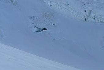 Glaciar de Lys a la altura de la Pirámide Vincent, 4.100m, alpes italianos, aunque las cuencas de acumulación de los principales glaciares alpinos aún muestran una gran actividad, los frentes de todos los glaciares europeos están en claro retroceso y la masa de hielo y por tanto la capacidad de alimentar las cuencas hídricas de Europa se está reduciendo.