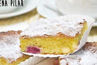 Blondies con frambuesas y nueces de Macadamia: